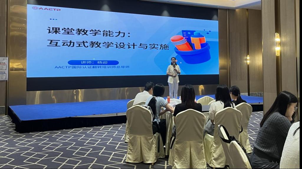 培训特邀交互式教学设计培训专家杨迎担任主讲,围绕“以学生为中心”的教学理念,开展了一场内容丰富、形式多样的教学能力提升培训。