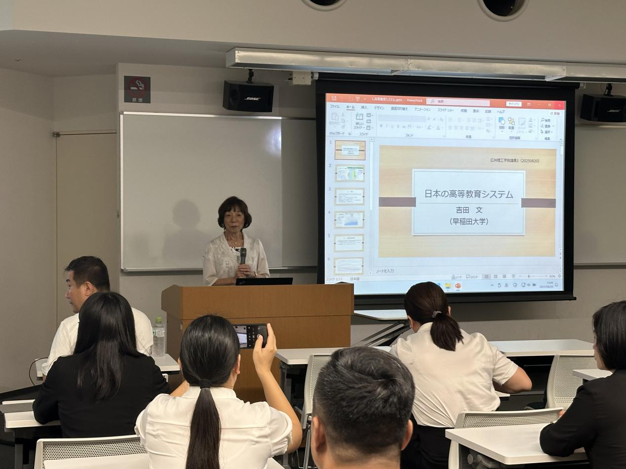 在专题课程中,早稻田大学三村隆男教授系统介绍了日本职业教育的发展历程与现状,强调从“重视分数”转向“培养资质”的教育理念,并分享了美国职业教育的典型案例。吉田文教授则从学制结构、入学考试、就业机制等多维度解析日本高等教育系统,尤其就少子化背景下大学招生策略、女性在理工科领域的促进计划等现实问题进行了深入分析。此外,田中博之教授就生成式AI在教育中的应用与伦理问题与代表团展开交流,提出“有限制使用AI”并强化元认知培养的教学建议。